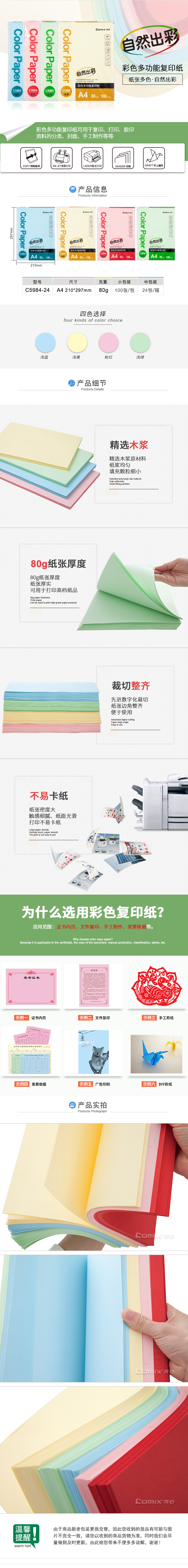 商品名称:齐心 C5984-24 彩色多功能复印纸 打印纸 A4 80克 24包