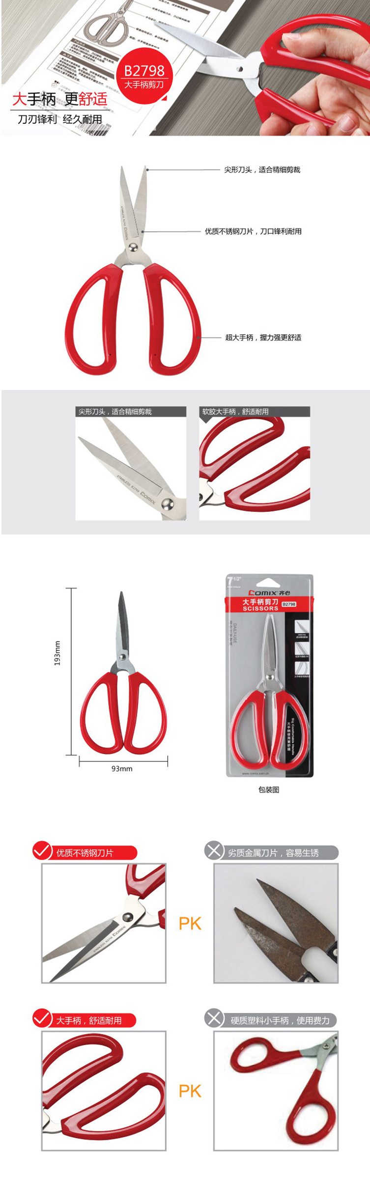 商品名称:齐心 B2798 大号大手柄剪刀 193mm