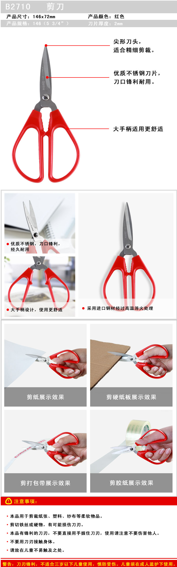 商品名称:齐心 B2710 小号大手柄剪刀 146mm