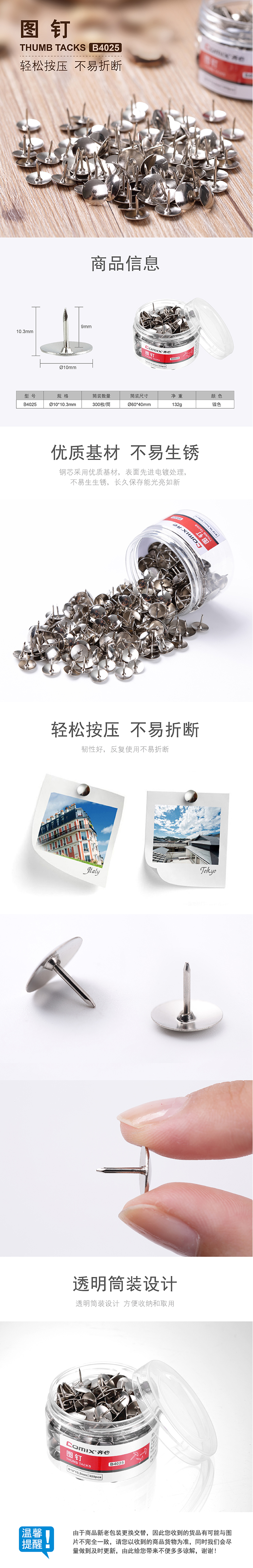 商品名称:齐心 B4025 图钉 (Ø10*10.3mm)