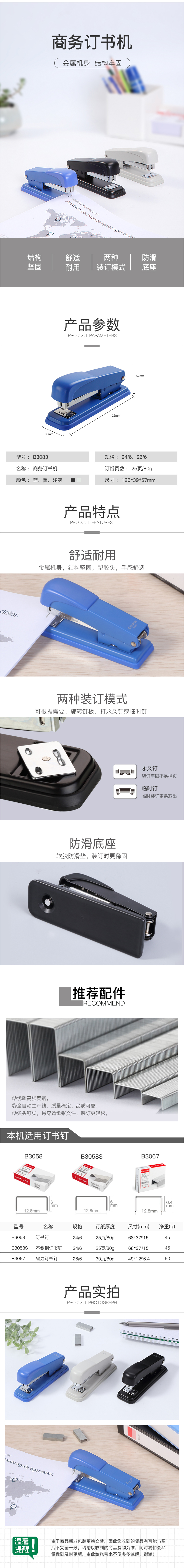 商品名称:齐心 B3083 耐用订书机 12#金属机
