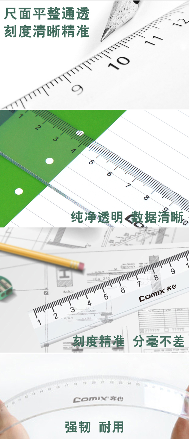 商品名称:齐心 B3250 精准刻度直尺 20CM