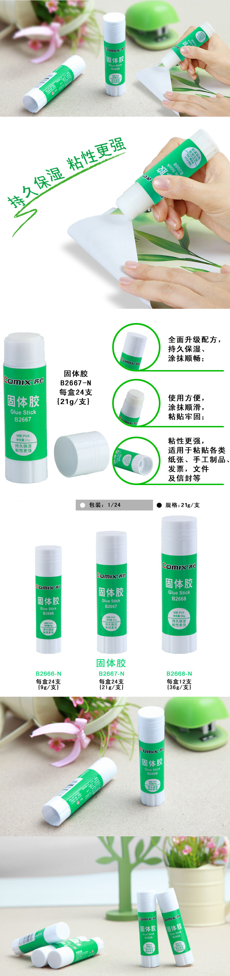 商品名称:齐心 B2667-N 固体胶PVA 21g
