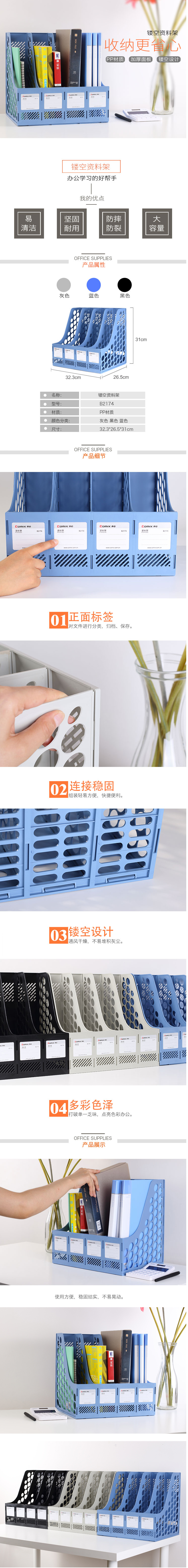 商品名称:齐心 B2174 经济型资料架/文件框 四格文件栏文件架