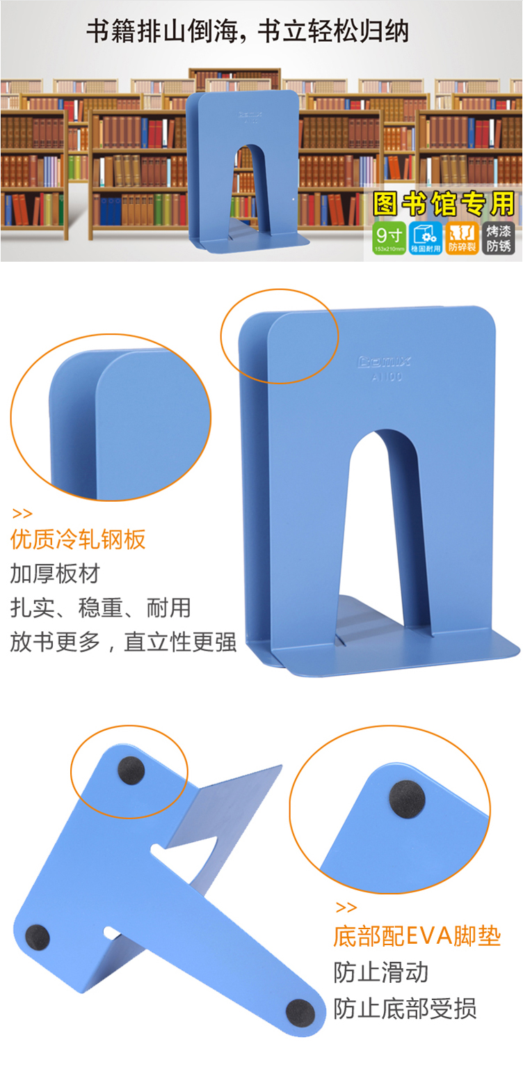 商品名称:齐心 A1100 图书馆专用铁书立 大号9寸(两个1套,单价为1套价格)