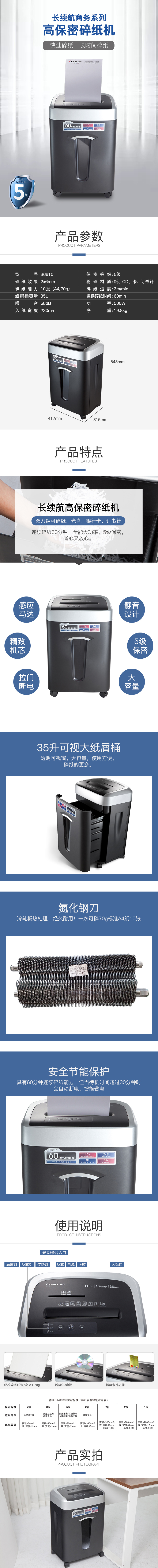 商品名称:齐心 S6610 长续航高保密碎纸机