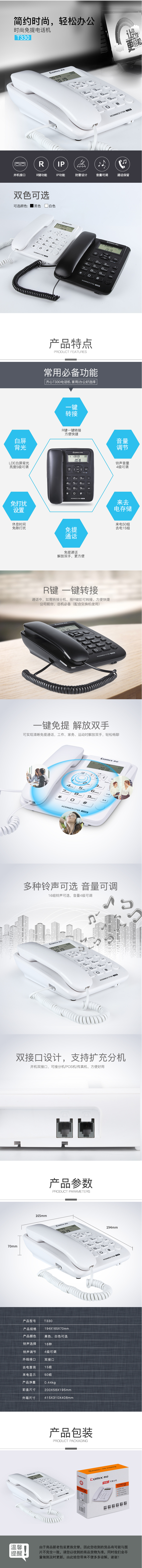 商品名称:齐心 T330 电话机 多功能免提