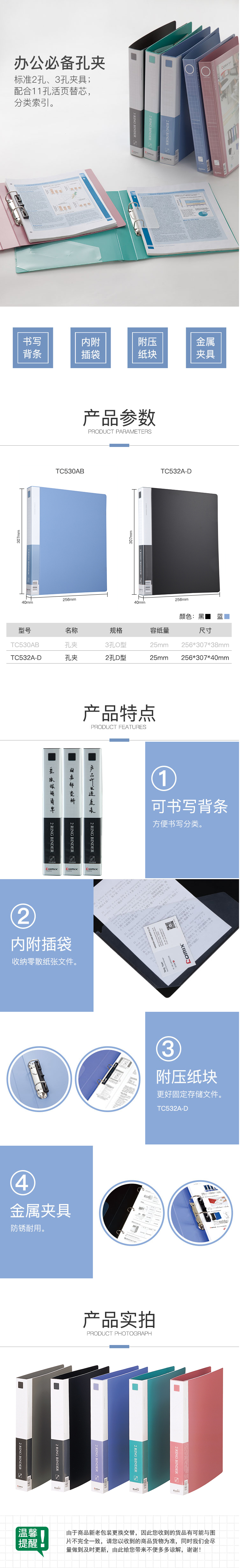 商品名称:齐心 TC532A-D 办公必备文件夹 A4 1.5寸2孔D型夹