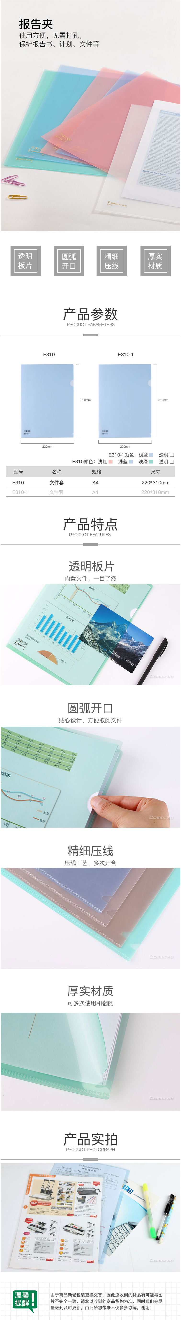 商品名称:齐心 E310 办公必备二页文件套 A4