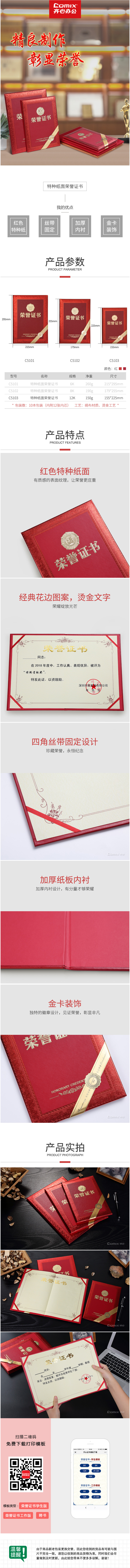 商品名称:齐心 C5103 特种纸荣誉证书12K