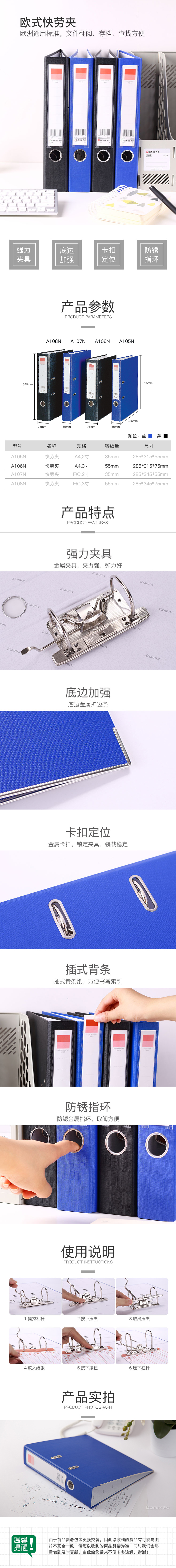 商品名称:齐心 A106N 超省钱欧式快劳夹 A4 3寸