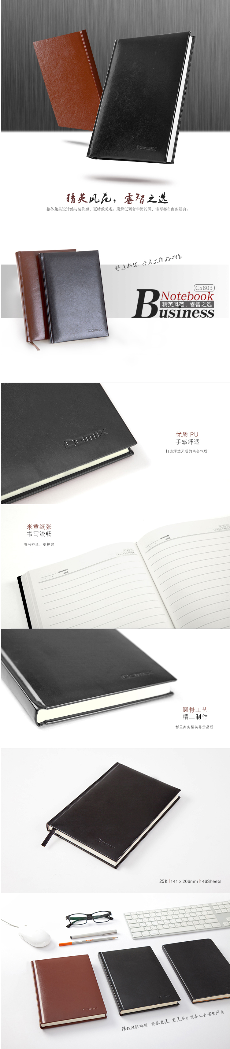 商品名称:齐心 C5803 皮面笔记本 25K 146张