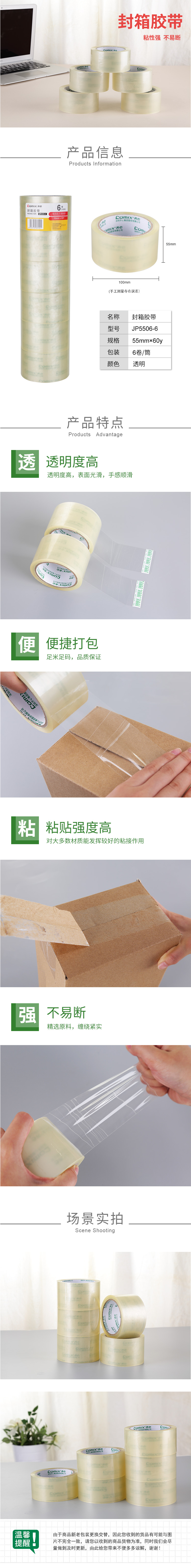 商品名称:齐心 JP5506-6 普透封箱胶带 6卷/筒 55mm*60y