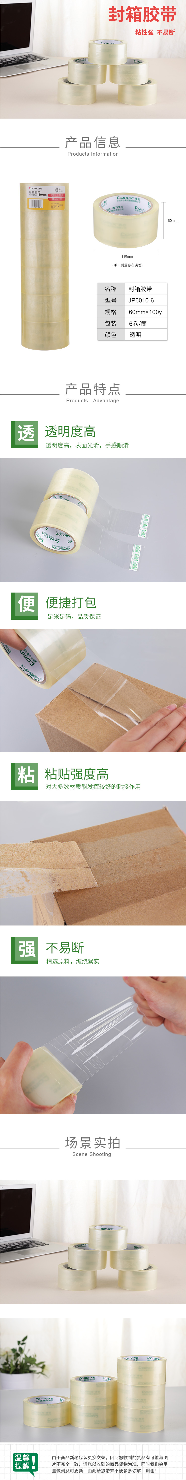 商品名称:齐心 JP6010-6 普透封箱胶带 6卷/筒 60mm*100y