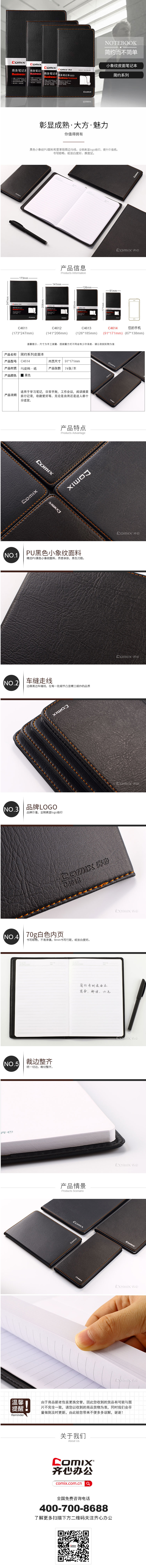 商品名称:齐心 C4614 简约系列皮面本 48K 74张笔记本