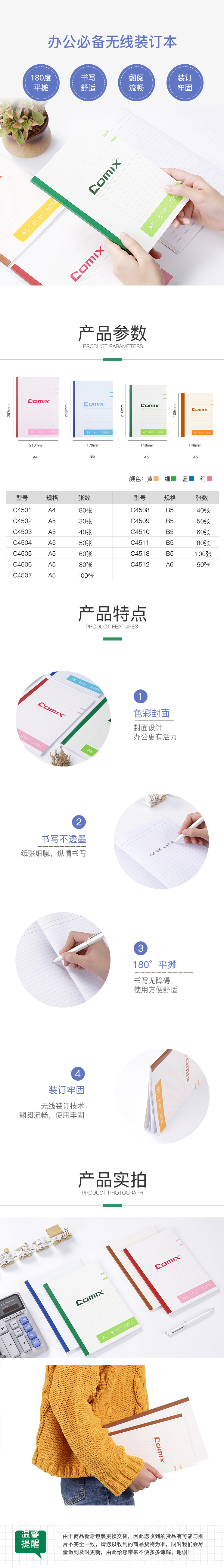 商品名称:齐心 C4518 办公必备无线装订本 B5 100张笔记本软抄本