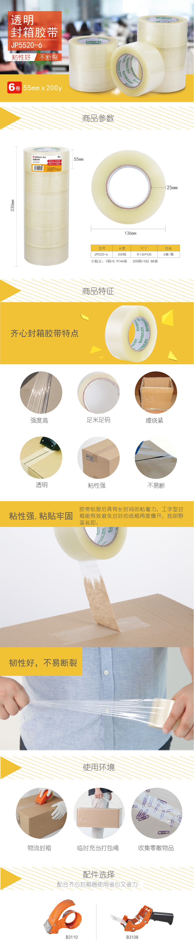 商品名称:齐心 JP5520-6 封箱胶带 6卷装