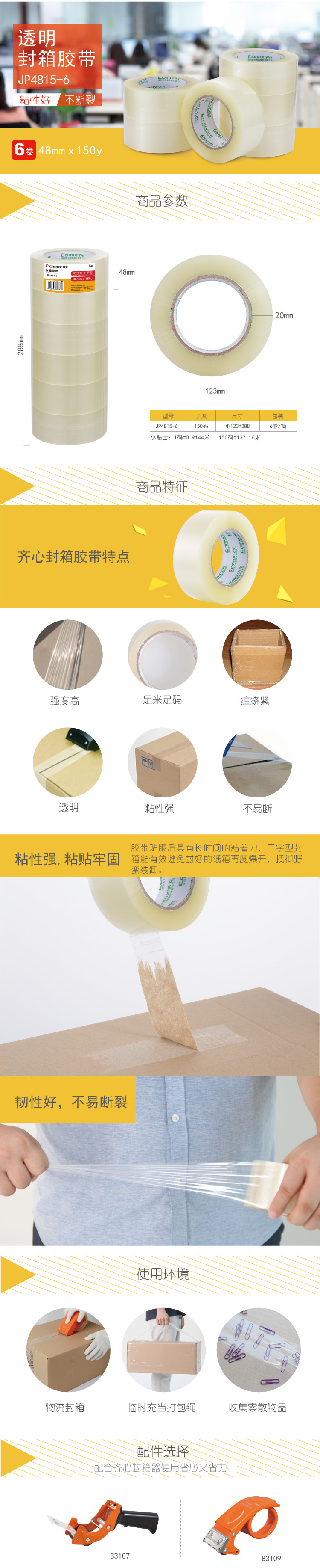 商品名称:齐心 JP4815-6 普透封箱胶带 48mm*150y 6卷装