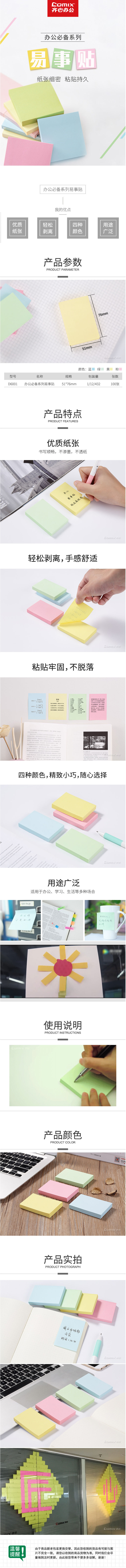 商品名称:齐心 D6001 办公必备系列易事贴 2X3英寸告示贴