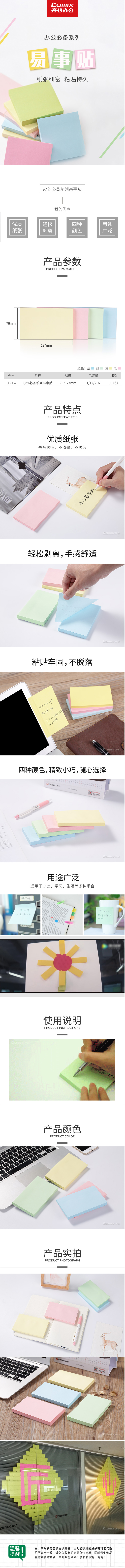 商品名称:齐心 D6004 办公必备系列易事贴 3X5英寸告示贴