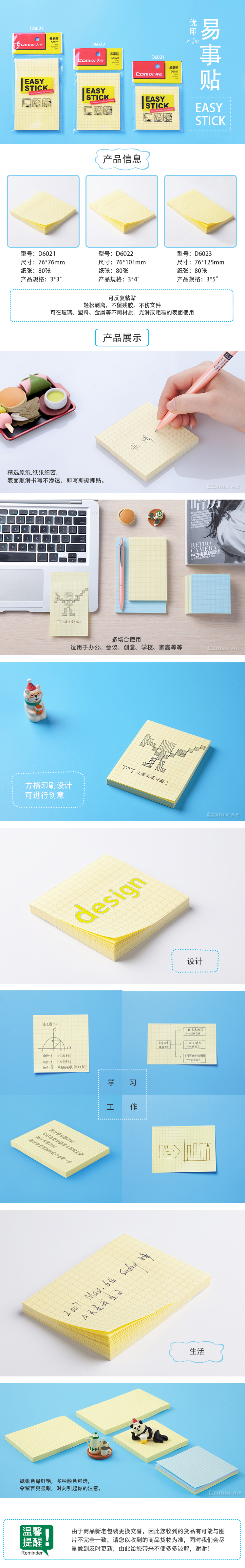 商品名称:齐心 D6023 方格易事贴 3*5 80张告示贴