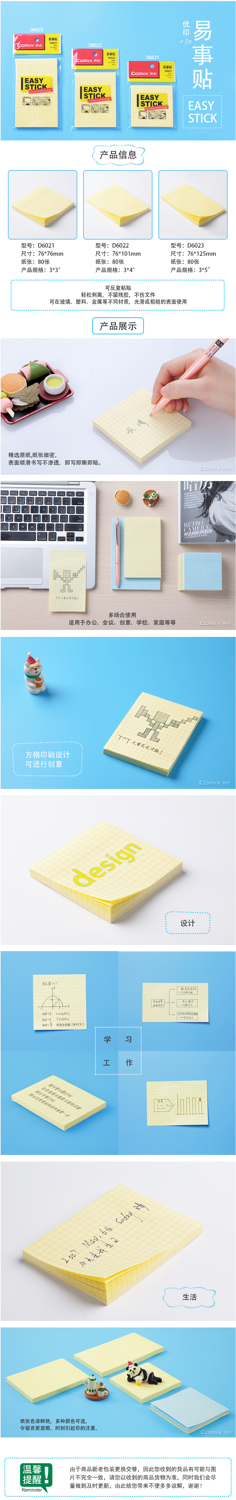商品名称:齐心 D6022 方格易事贴 3*4 80张告示贴