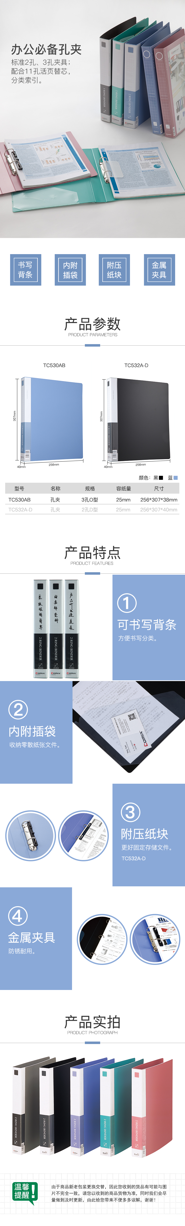 商品名称:齐心 TC530AB 办公必备文件夹 A4 1.5寸3孔O型夹