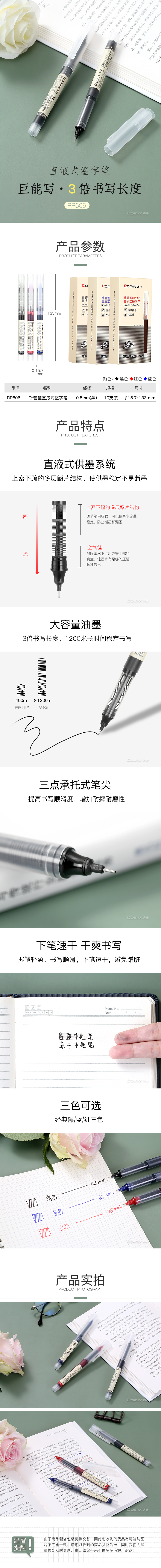> 齐心 RP606 直液式签字笔 0.5mm全针管