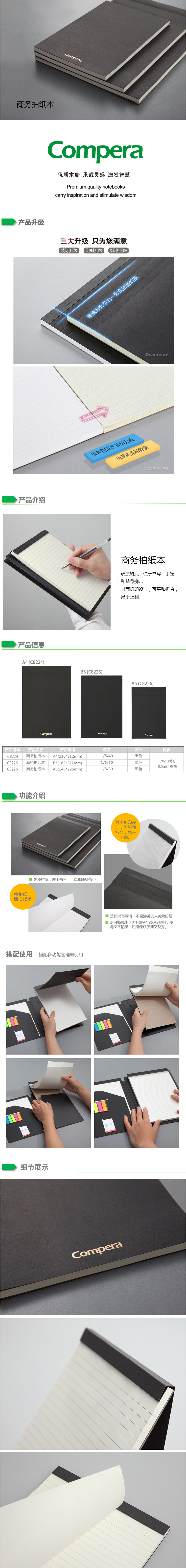 商品名称:齐心 C8225 Compera 商务拍纸本(横格)B5 80张