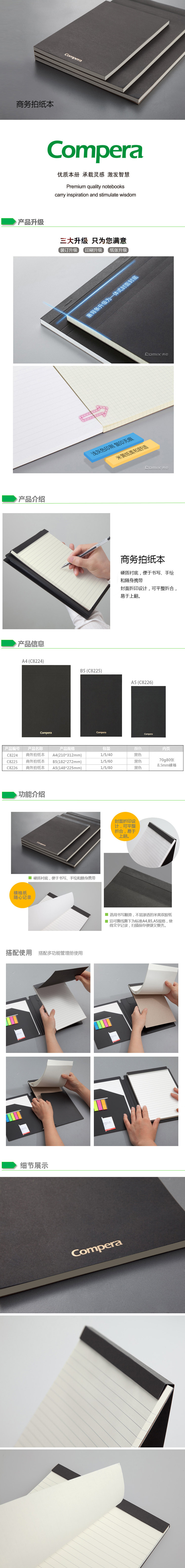 商品名称:齐心 C8224 Compera 商务拍纸本(横格)A4 80张