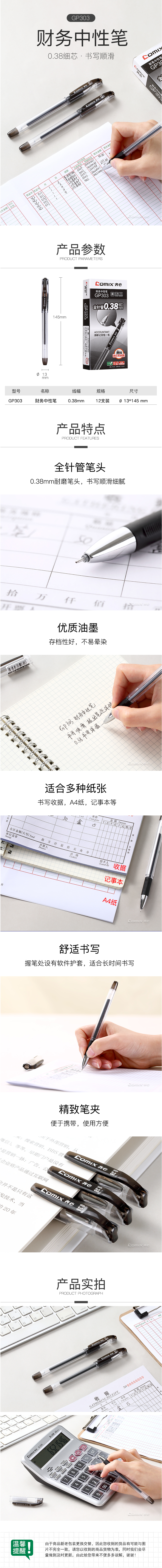 商品名称:齐心 GP303 极细中性笔0.38mm 匹配笔芯R939
