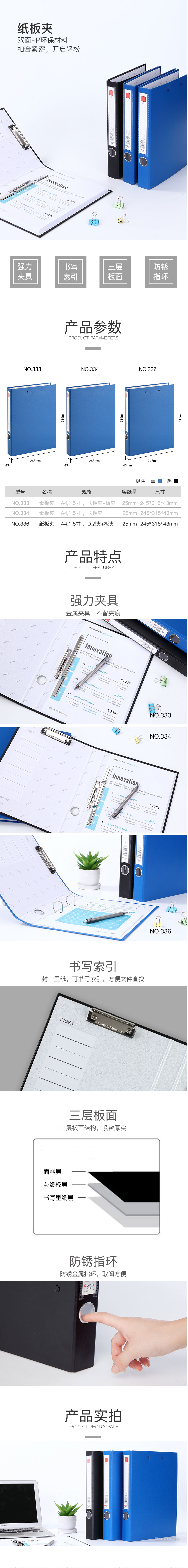 商品名称:齐心 NO.336 办公必备纸板夹 A4 1.5寸 2孔D型夹+板夹