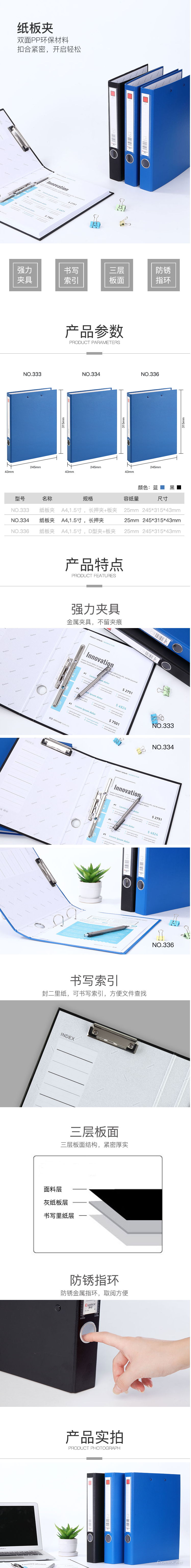 商品名称:齐心 NO.334 办公必备纸板夹 A4 长押夹