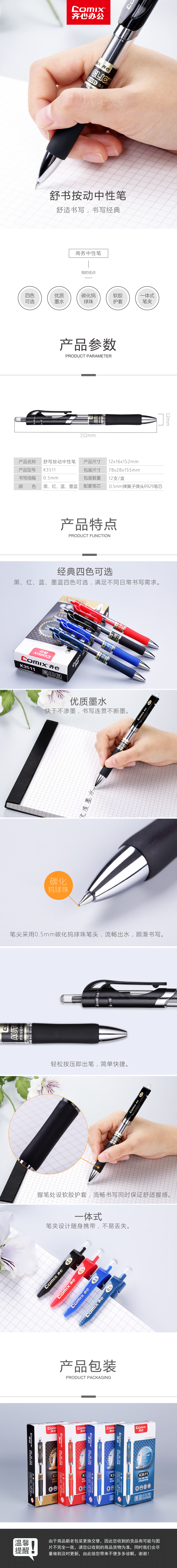 商品名称:齐心 K3511 舒写按动笔中性笔 0.5mm匹配笔芯 R929