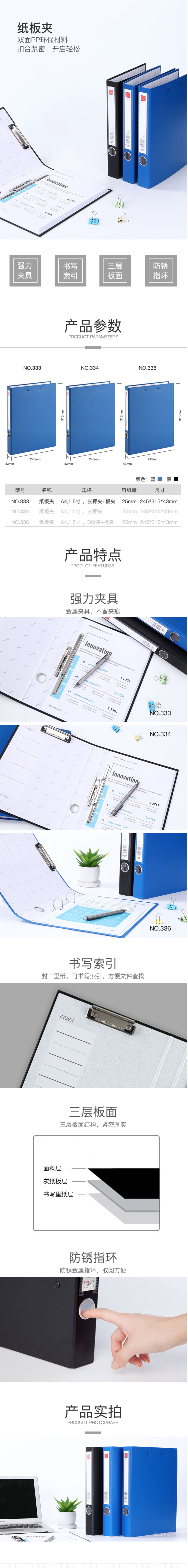 商品名称:齐心 NO.333 办公必备纸板夹 A4 长押夹+板夹