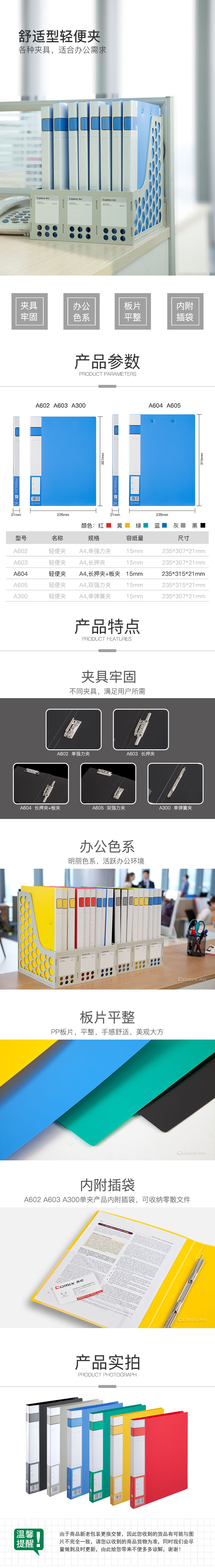 商品名称:齐心 A604 办公必备轻便夹 A4 长押夹+板夹