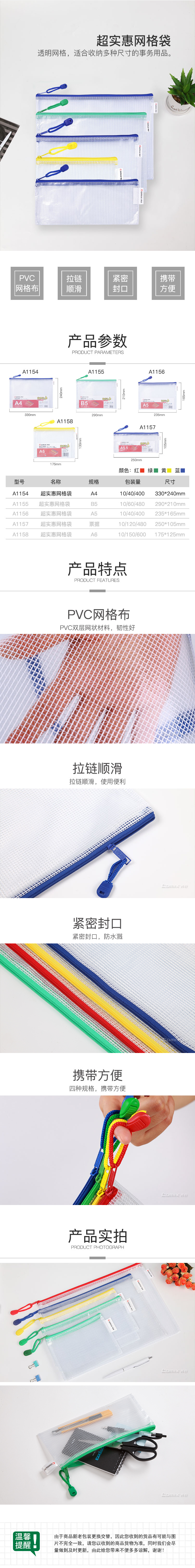 商品名称:齐心 A1154 超实惠网格袋 A4 10个装