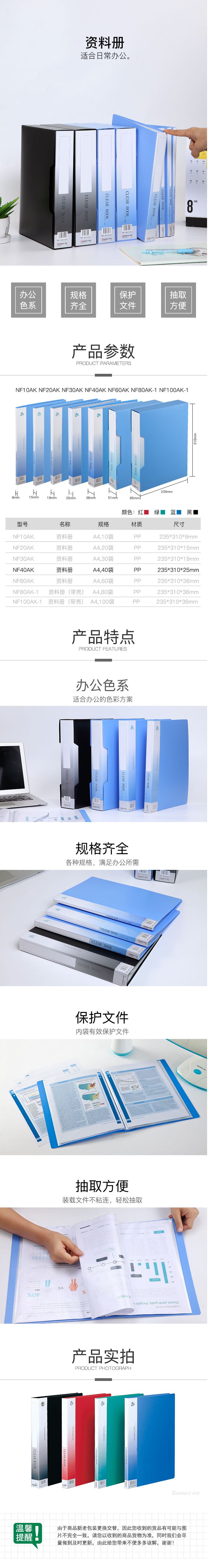 商品名称:齐心 NF40AK 办公必备资料册 A4 40袋
