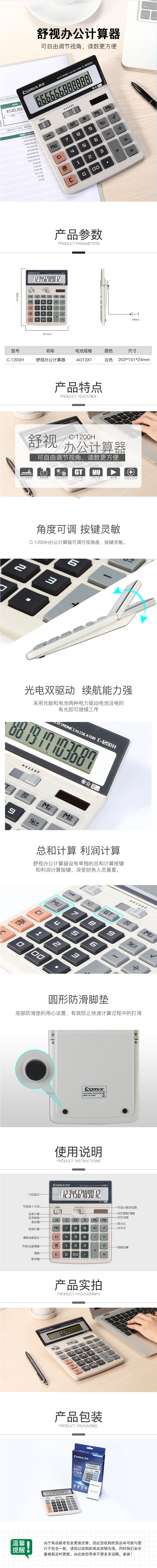 商品名称:齐心 C-1200H 计算器 大台 舒视办公