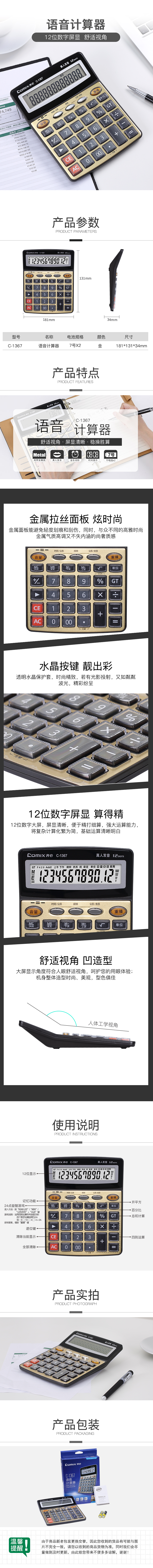 商品名称:齐心 C-1367 语音计算器